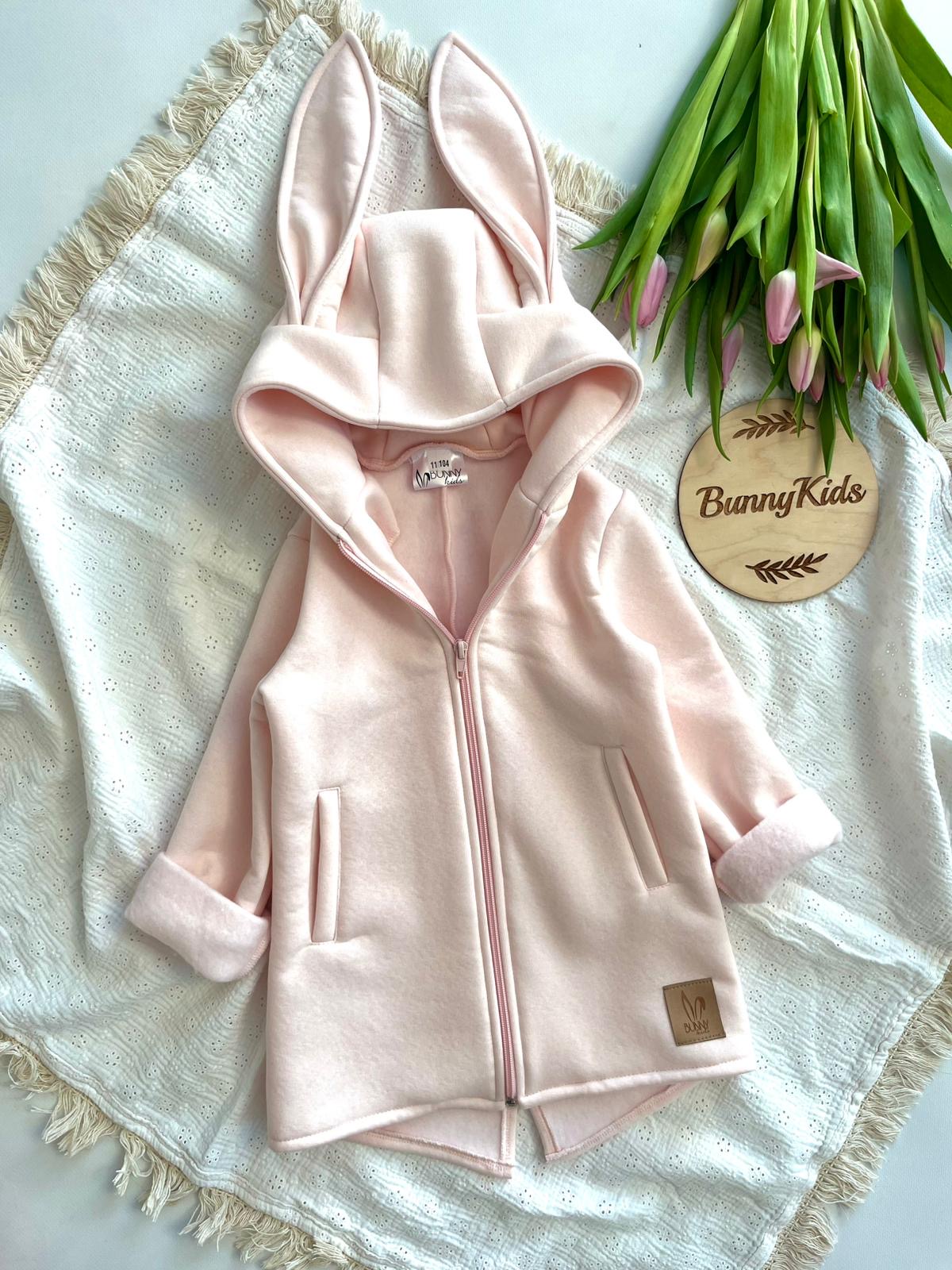 Štýlový hrejivý mikino-kabátik s uškami Zajace od Bunnykids – farba JEMNÁ RUŽOVÁ: