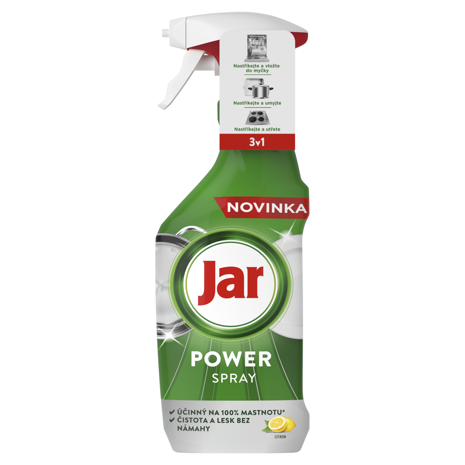 Jar Power sprej 3 v 1 Riad a kuchyňa pôsobia na 100% každodennej mastnoty na riad av kuchyni pred samotným umývaním, aby ste mohli dosiahnuť čistotu a lesk bez námahy. Už vás nebaví namáčať riad a drhnúť kuchyňu? Dajte zbohom starým spôsobom čistenia vďaka spreji. Power sprej 3 v 1 Riad a kuchyňa od značky Jar je ľahkým riešením na mastnotu pred umývaním riadu v umývačke, pred ručným umývaním riadu, a dokonca aj na kuchynské povrchy!