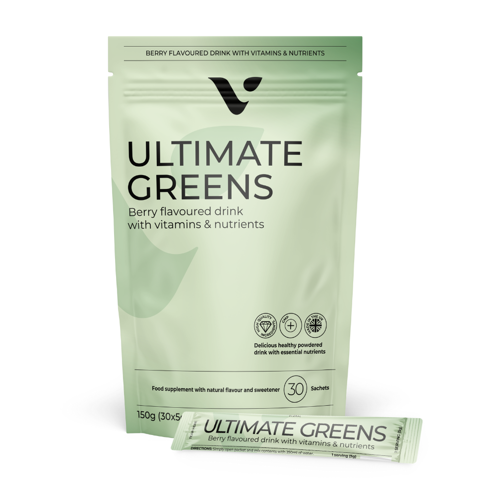 Naše doplnky Ultimate Greens sú odborne formulované ako jemný prášok, ktorý kombinuje 26 kľúčových ovocných a zeleninových extraktov a práškov. Táto výnimočná zmes vitamínov a minerálov, obohatená o vysoký obsah zinku, vitamínu B6 a vitamínu C, plní vo vašom tele zásadnú úlohu. Od zníženia únavy a únavy až po podporu normálnej funkcie vášho imunitného systému a dokonca aj príspevok k zdravej psychologickej a nervovej funkcii – naše doplnky sa starajú o vašu pohodu holistickým spôsobom. Zažite nádhernú prirodzenú chuť bobúľ našich Ultimate Greens, vďaka ktorým bude každá porce. Zvýšte svoju výživu a osvojte si zdravší životný štýl so silou doplnkov Ultimate Greens. Uvoľnite potenciál svojho tela pomocou týchto zázrakov bohatých na živiny, ktoré vás revitalizujú a povzbudia. Ultimate Greens je dokonale vyvážená zmes, ktorá podnieti prirodzenú vitalitu vášho tela a udrží dlhodobé zdravie. Zaraďte ho do svojej každodennej rutiny, aby bol pohodlný spôsob, ako podporiť svoju dlhovekosť a pohodu. Prijmite dobrotu prírody a vyživte svoje telo, aby ste boli zdravší a živší. Zvyšte si výživ Ultimate Greens.