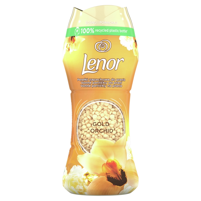 - Vonné perličky Lenor Gold Orchid s dlhotrvajúcou vôňou vzácnej vanilky, mimózy, medovej ruže a broskýň.